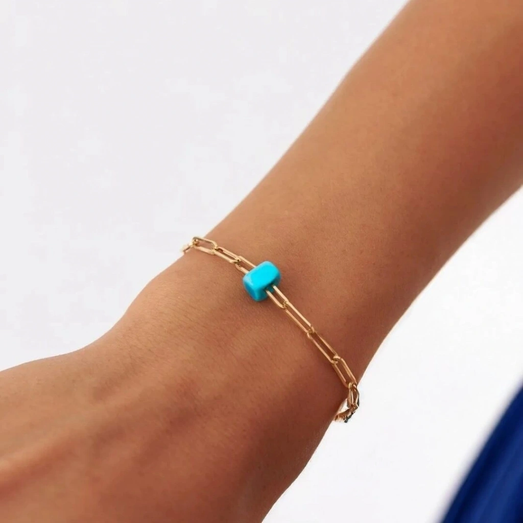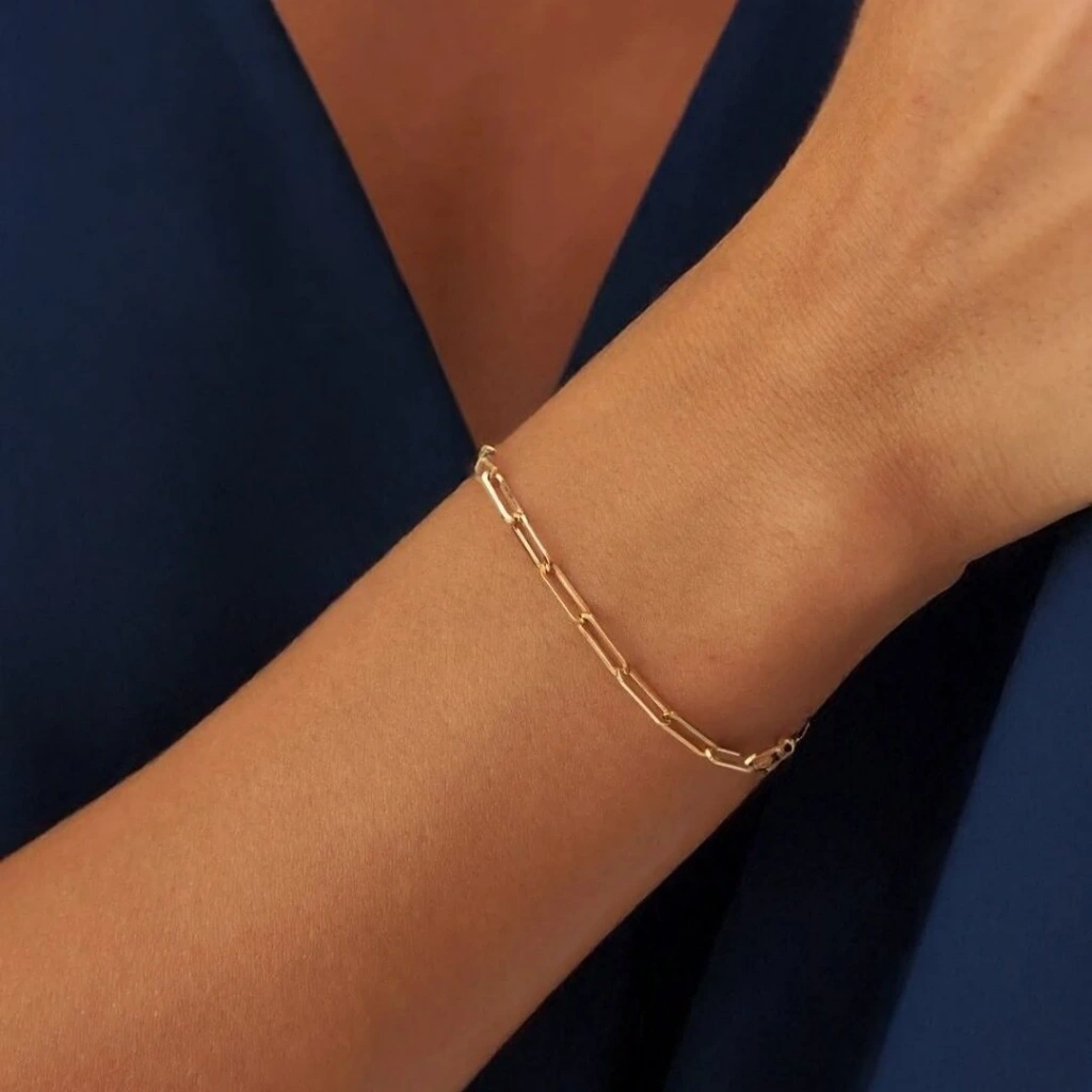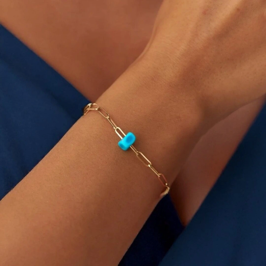 Evla Kuyumculuk'un zarif ve şık tasarımlarından biri olan 14 Ayar Altın Ataç Bileklik, bileğinizi süslemek ve tarzınızı tamamlamak için mükemmel bir seçenektir. Bu bileklik, minimal tasarımı ve incelikli detaylarıyla dikkat çekerken aynı zamanda zarafetiyle öne çıkar.Bu özel bileklik, 14 ayar altından üretilmiştir ve yaklaşık olarak 1,40 gram ağırlığındadır. Altının 14 ayar olması, bileziğin kalitesini ve dayanıklılığını artırırken aynı zamanda parlak bir görünüm sunar. Bileziğe özel bir zarafet katar.