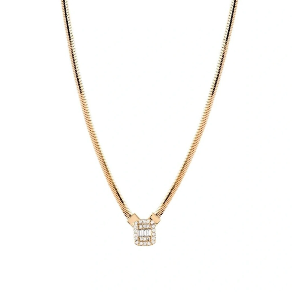 Zincir, baget kesim taşlarla süslenmiş balık sırtı şeklindedir.