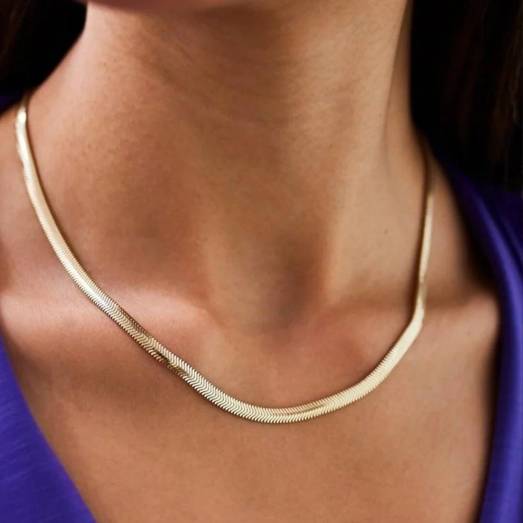 14 Ayar Altın Balık Sırtı Zincir günlük kullanım için idealdir. Her kıyafetle uyum sağlayabilen şık bir aksesuardır.
