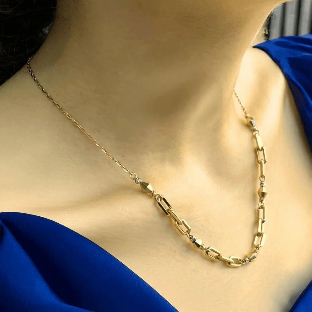 Bu 14 ayar altın burgu ataç zincir, zarif ve modern bir tasarıma sahip olup, 6,40 gram ağırlığındadır ve 45 cm uzunluğundadır. Zincirin burgu deseni, geleneksel ataç zincir formuna dinamik bir hareket katarken, altının doğal ışıltısını öne çıkarır. Hafif ve şık yapısı, günlük kullanımda rahatlıkla tercih edilebileceği gibi, özel günlerde de şıklığınızı tamamlayacak bir aksesuardır.