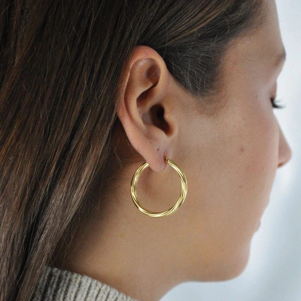 14 Ayar Altın Büyük Sarmal Halka Küpe 2,75 Gram:Evla Kuyumculuk'un eşsiz ve dikkat çekici tasarımlarından biri olan14 Ayar Altın Büyük Sarmal Halka Küpe,Şıklığı ve zarafetiyle göz kamaştırır. Bu özel küpe, 14 ayar altın malzemeden üretilmiştir ve benzersiz büyük sarmal detaylarıyla öne çıkar. İster özel bir etkinlikte ister günlük kullanımda olsun, bu halka küpe tarzınızı tamamlayacak ve size sofistike bir görünüm kazandıracak. 2,75 gram ağırlığındaki bu küpe hafif ve rahattır, böylece uzun saatler boyunca kullanabilirsiniz.