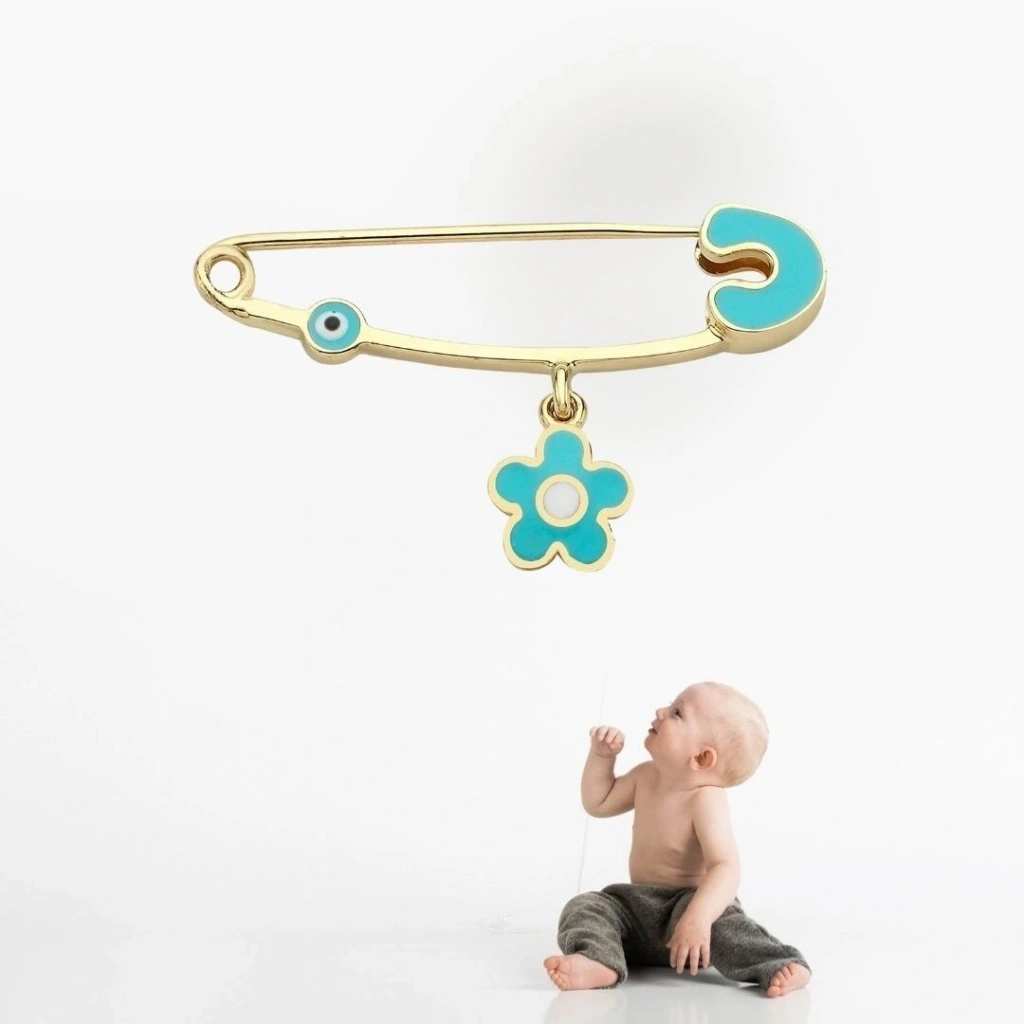 14 Ayar Altın Çiçek Bebek İğnesi 1,18 Gram : Bu 14 Ayar Altın Bebek İğnesi, Evla Kuyumculuk tarafından özenle tasarlanmış ve üretilmiş bir mücevherat ürünüdür. Yüksek kaliteli malzemeler ve özenli işçilikle yapılan bu bebek iğnesi, zarif ve sevimli bir görünüme sahiptir.Bebek iğnesinin yapımında 14 ayar altın kullanılmış olup, toplamda 1,18 gram ağırlığındadır. İnce ve narin tasarımıyla bebeklerin giysilerine zarar vermeden kullanılabilecek şekilde üretilmiştir. Altın rengi, iğneye değerli ve şık bir hava katarken, zarif detayları bebek iğnesine özel bir zarafet kazandırır.