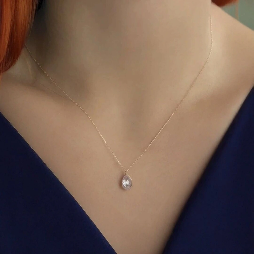 14 Ayar Altın Damla Taşlı Kolye 1,35 Gram.