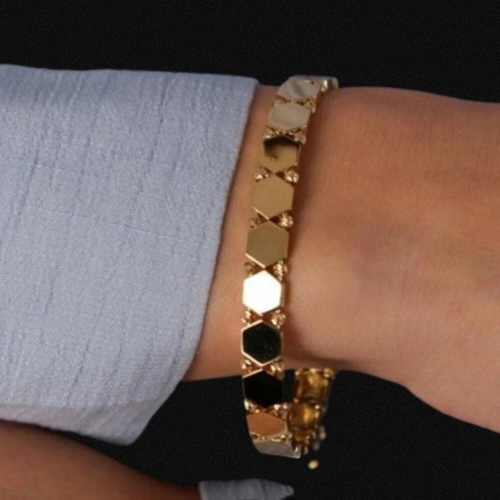 Toplam 14 gram ağırlığıyla bilekte kendini hissettiren bu özel tasarım, klasik kelepçelere modern bir dokunuş sunar.