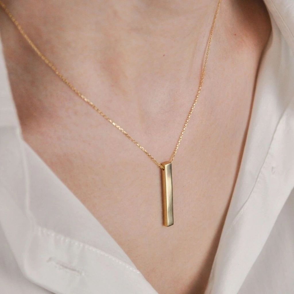 Düz Plaka Kolye'nin en belirgin özelliği, kolyenin düz ve şık plaka tasarımıdır. Bu minimalist tasarım, sadelik ve şıklığı bir araya getirir. Plakanın pürüzsüz yüzeyi, kolyenin modern ve zarif bir görünüm kazanmasını sağlar. Bu kolye, her tarz ve her kıyafetle uyum sağlayabilen çok yönlü bir parçadır. Sadelik ve zarafetin birleştiği bu kolye, her zevke hitap eder.