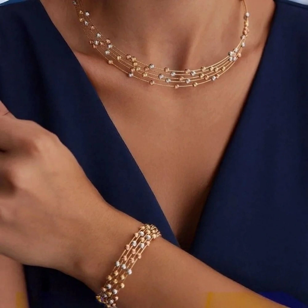 Set, kolye, bileklik ve küpeden oluşmaktadır.