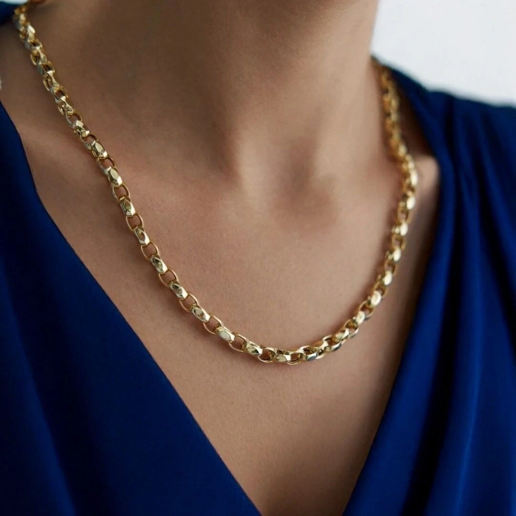Evla Kuyumculuk’un en sevilen tasarımlarından biri olan 14 Ayar Altın Kalın Doç Zincir 13,53, 13,53 gram ağırlığında ve 50 cm uzunluğundadır. Zincir, şık ve modern bir görünüm sunan kalın doç zinciri tasarımına sahiptir.