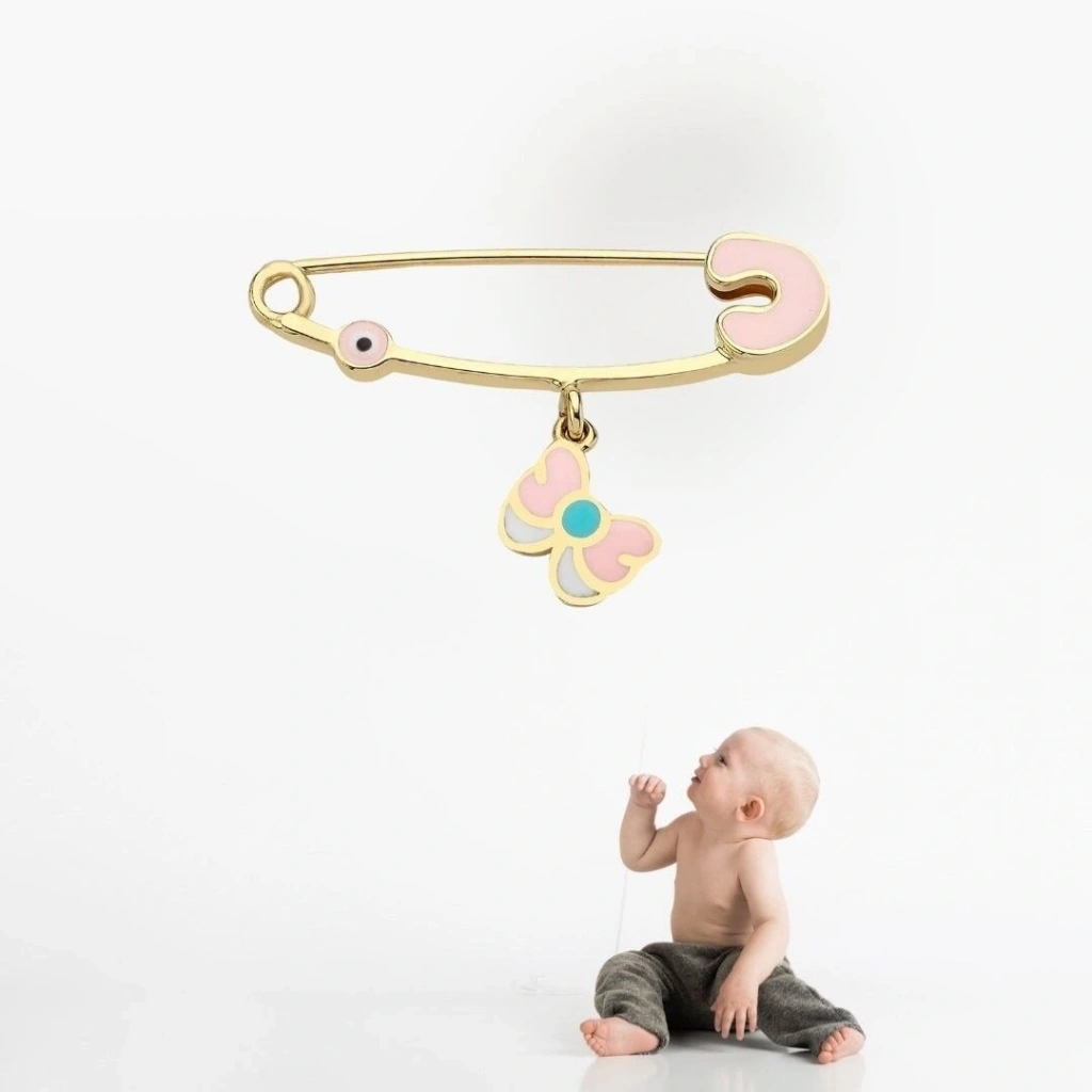 14 Ayar Altın Kelebek Bebek İğnesi 1,18 Gram : Bu 14 Ayar Altın Bebek İğnesi, Evla Kuyumculuk tarafından özenle tasarlanmış ve üretilmiş bir mücevherat ürünüdür. Yüksek kaliteli malzemeler ve özenli işçilikle yapılan bu bebek iğnesi, zarif ve sevimli bir görünüme sahiptir.Bebek iğnesinin yapımında 14 ayar altın kullanılmış olup, toplamda 1,18 gram ağırlığındadır. İnce ve narin tasarımıyla bebeklerin giysilerine zarar vermeden kullanılabilecek şekilde üretilmiştir. Altın rengi, iğneye değerli ve şık bir hava katarken, zarif detayları bebek iğnesine özel bir zarafet kazandırır.