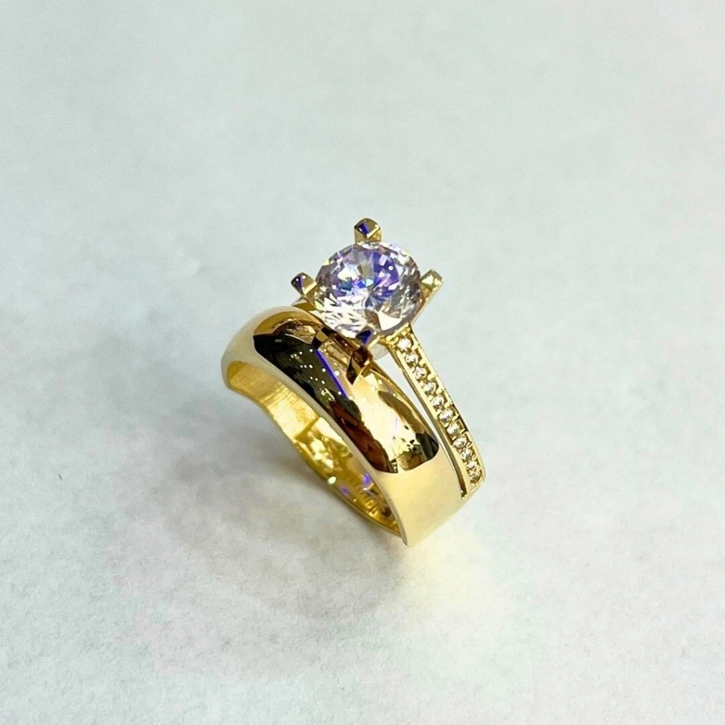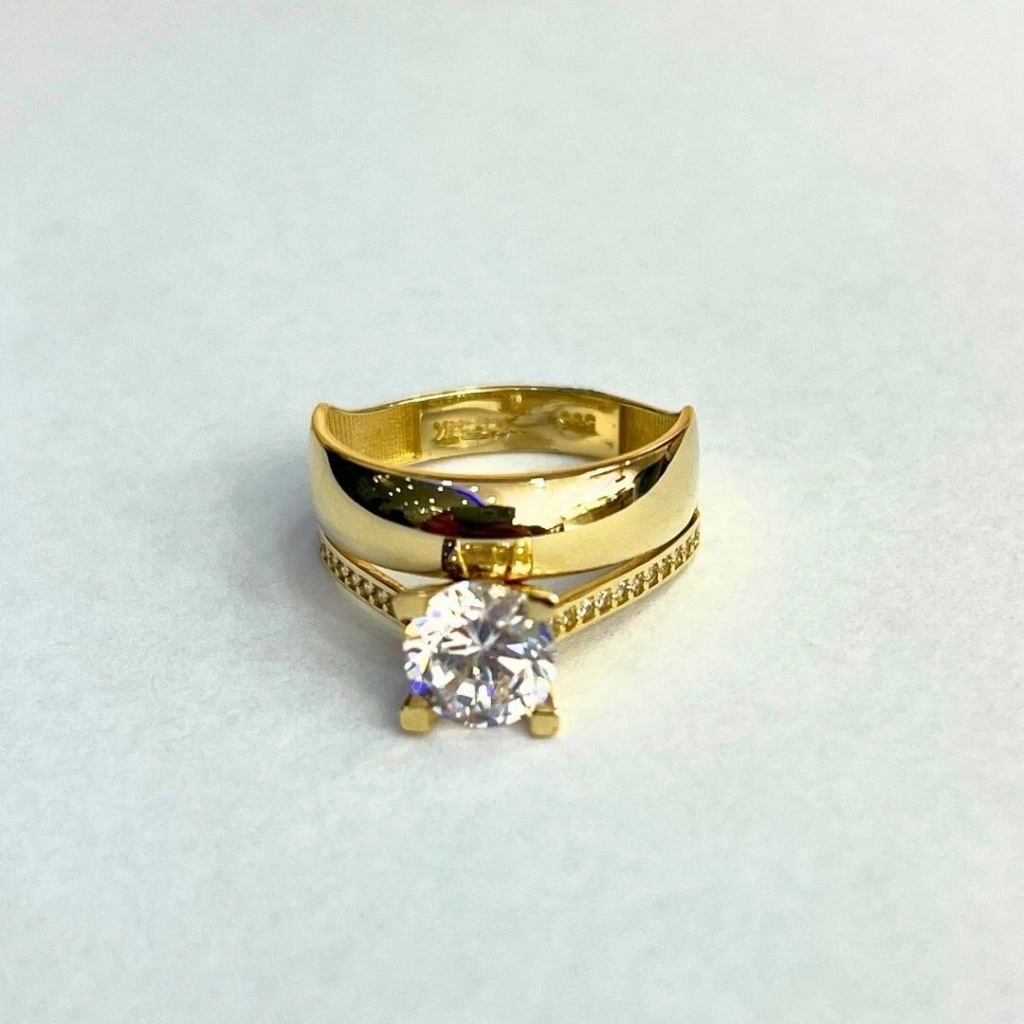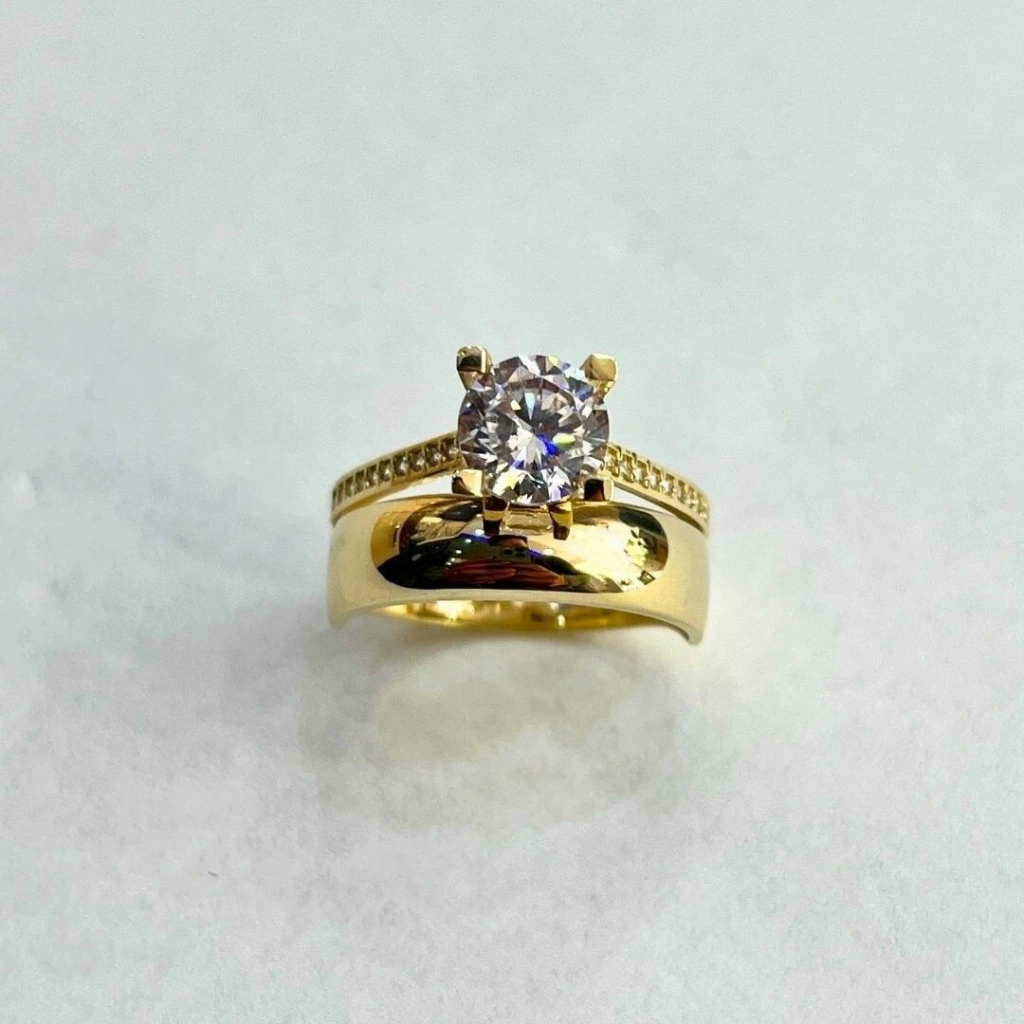 Bu 14 Ayar Altın Klasik Alyans Tektaş Yüzük, yüksek kaliteli 14 ayar altından üretilmiş olup, tektaş detayıyla öne çıkar.