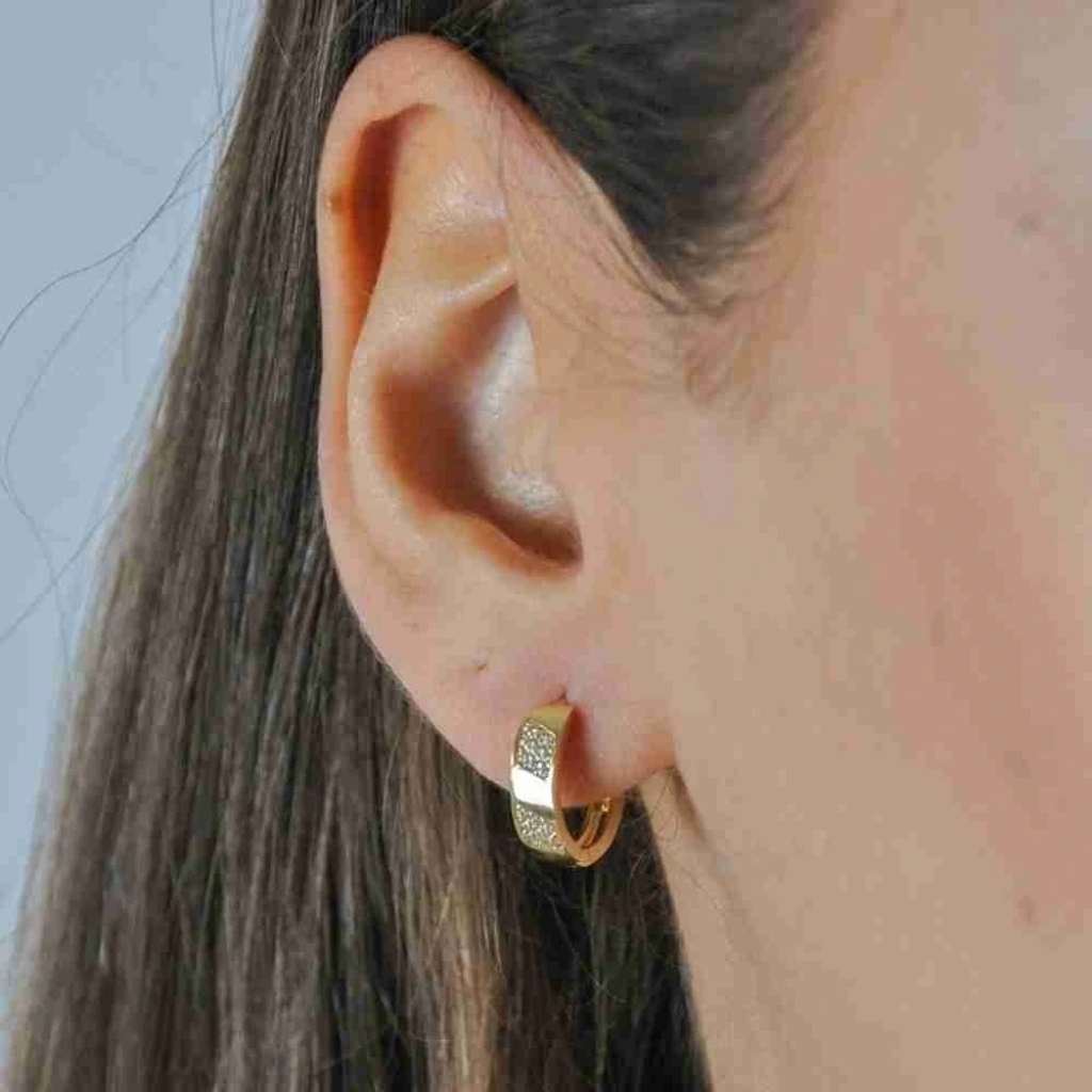 14 Ayar Altın Köşeli Taşlı Halka Küpe 2,26 Gram: Evla Kuyumculuk'un göz alıcı ve şık tasarımlarından biri olan 14 Ayar Altın Köşeli Taşlı Halka Küpe, tarzınıza zarafet ve benzersizlik katmak için mükemmel bir seçenektir. Bu özel küpe, 14 ayar altın malzemeden üretilmiştir ve köşeli taş detaylarıyla dikkat çeker. Bu halka küpe, 14 ayar altının kalitesi ve dayanıklılığıyla tasarlanmıştır. 2,26 gram ağırlığındaki bu küpe hafif ve rahattır, böylece uzun süre boyunca kullanabilirsiniz.
