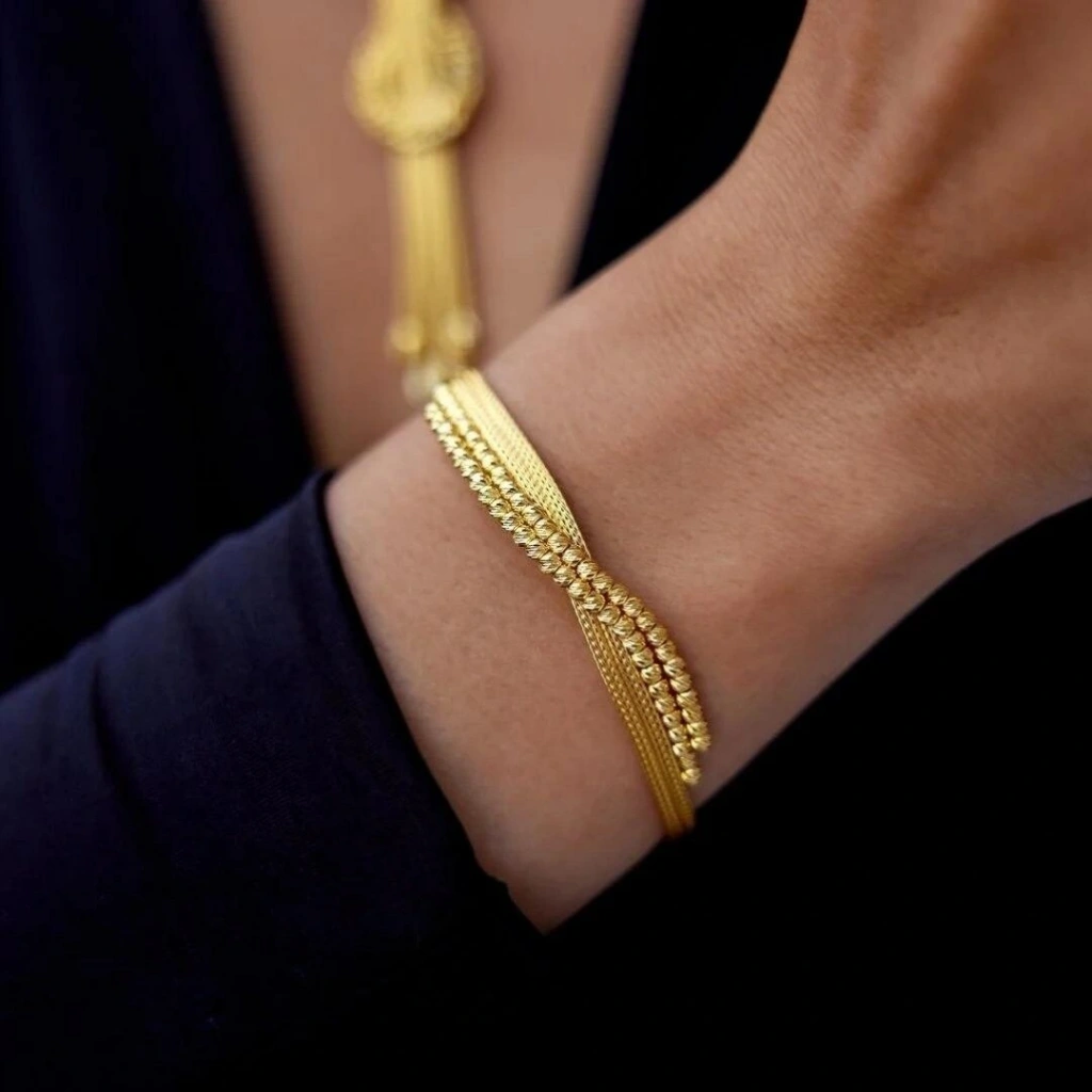 14 Ayar Altın 3 Sıra Örgü Set Takımı