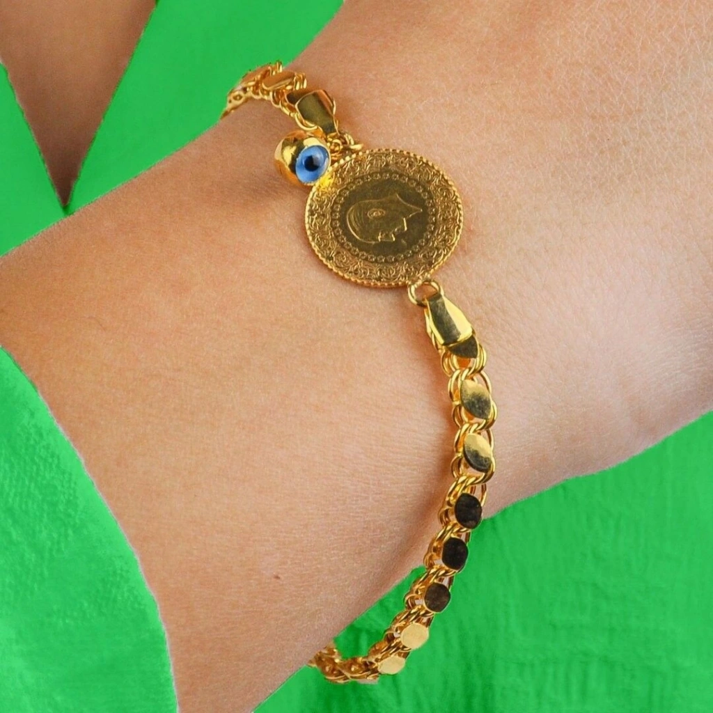 Şıklık ve yatırımın buluştuğu 14 Ayar Altın Pullu Çeyrekli Bileklik ile tarzınızı tamamlayın!