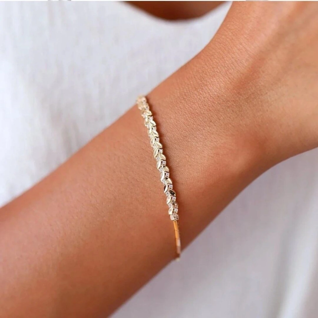 Bileklik, 19 cm uzunluğundadır ve motifli zincir şeklindedir.
