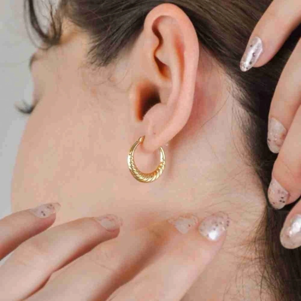 14 Ayar Altın Sarmal Halka Küpe 1,15 Gram: 14 Ayar Altın Sarmal Halka Küpe, zarif ve şık bir mücevherdir. Bu özel tasarım, özenle seçilmiş 14 ayar altın ile yapılmıştır ve 1,15 gram ağırlığındadır. Bu halka küpe, sarmal detaylarıyla dikkat çekmektedir. Sarmal şekilleri, küpenin yüzeyinde estetik bir desen oluşturur ve hareketli bir görünüm kazandırır. Bu tasarım, küpeye modern bir dokunuş katarak tarzınızı vurgular.