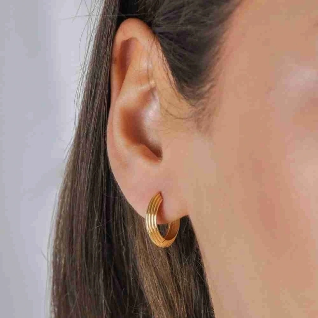 Küpe, günlük kullanım için idealdir. Spor ve klasik tarz kıyafetlerle uyum sağlayabilir.