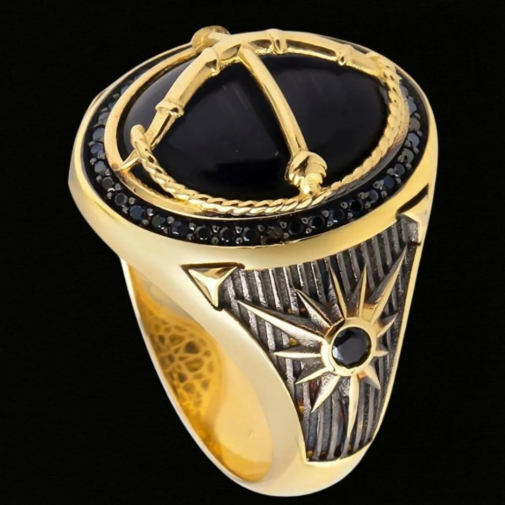 14 Ayar Altın Siyah Taşlı Kutup Erkek Yüzüğü