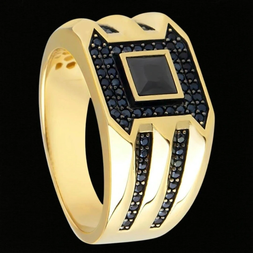 14 Ayar Altın Siyah Taşlı Onniks Erkek Yüzüğü
