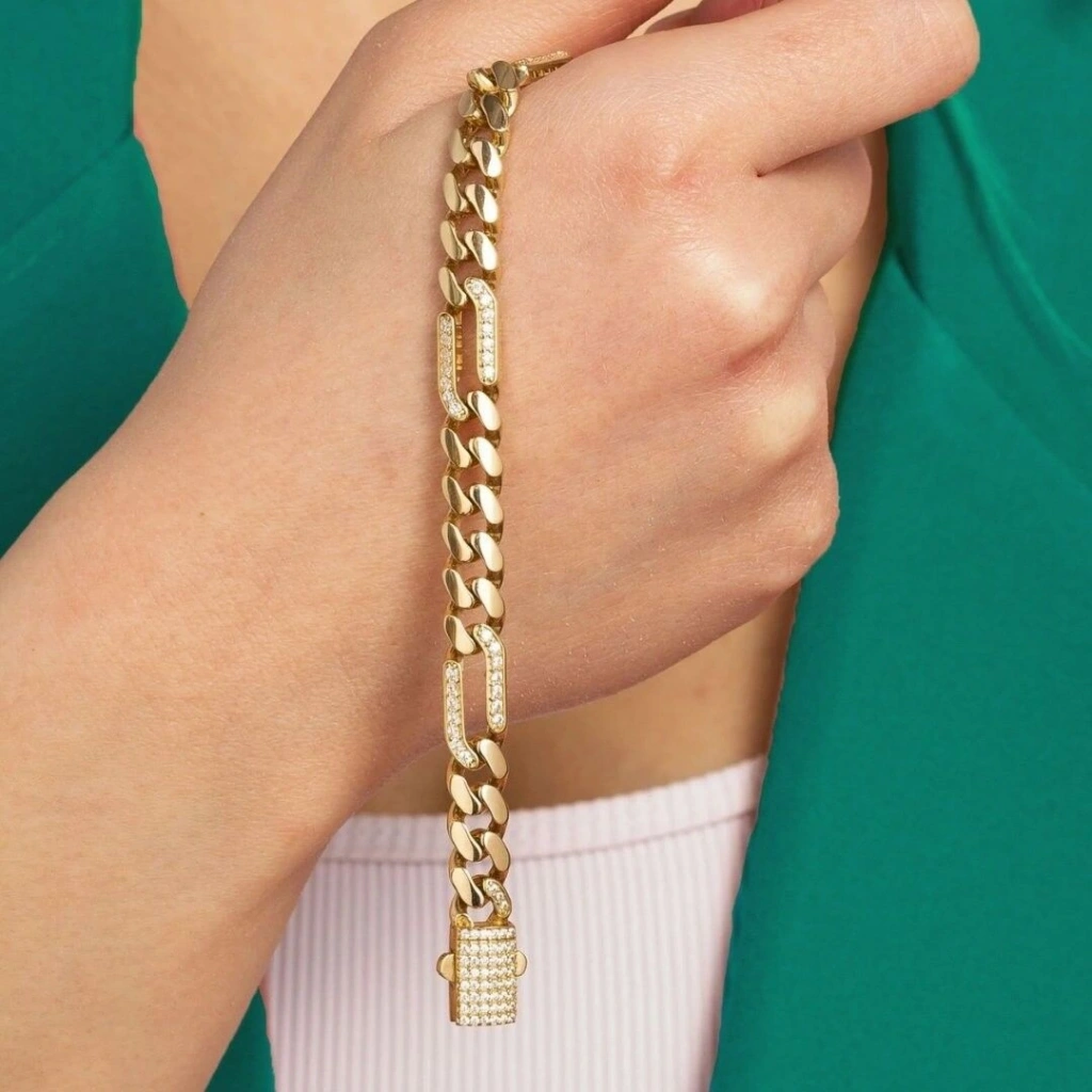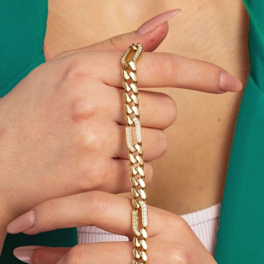 14 Ayar Altın Taşlı Gurmet Zincir Bileklik