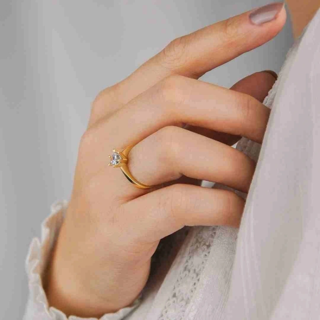 14 Ayar Altın Tektaş 6 Tırnak Yüzük 2,59 Gram: Evla Kuyumculuk, zarafetin ve şıklığın simgesi olan 14 Ayar Altın Tektaş 6 Tırnak Yüzük ile benzersiz bir mücevher deneyimi sunuyor. Bu muhteşem yüzük, 2,59 gram ağırlığındaki 14 ayar altın ile üretilmiştir. İnce işçilik ve özenle seçilen değerli taşlarla tasarlanan bu yüzük, her adımda dikkatleri üzerinize çekmenizi sağlayacak. Tektaş tasarımıyla öne çıkan yüzük, tek taşın etkileyici ışıltısıyla romantik bir atmosfer yaratırken, altının asil duruşuyla da zarafetinizi tamamlar.