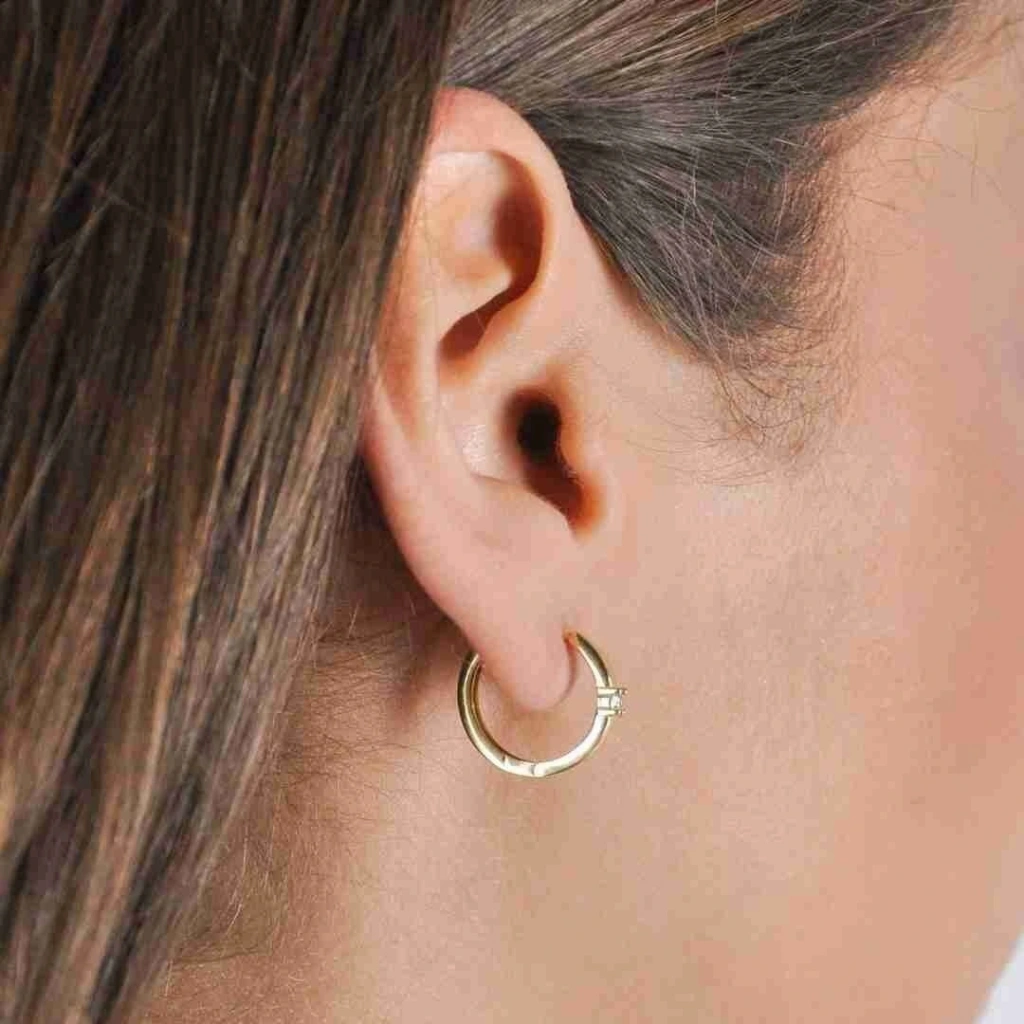 14 Ayar Altın Tektaş Halka Küpe, zarifliği ve şıklığı bir araya getiren eşsiz bir mücevherdir.
