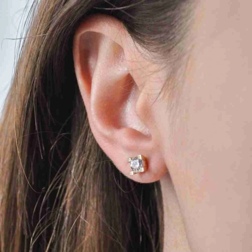 Evla Kuyumculuk 14 Ayar Altın Tektaş Vidalı Küpe