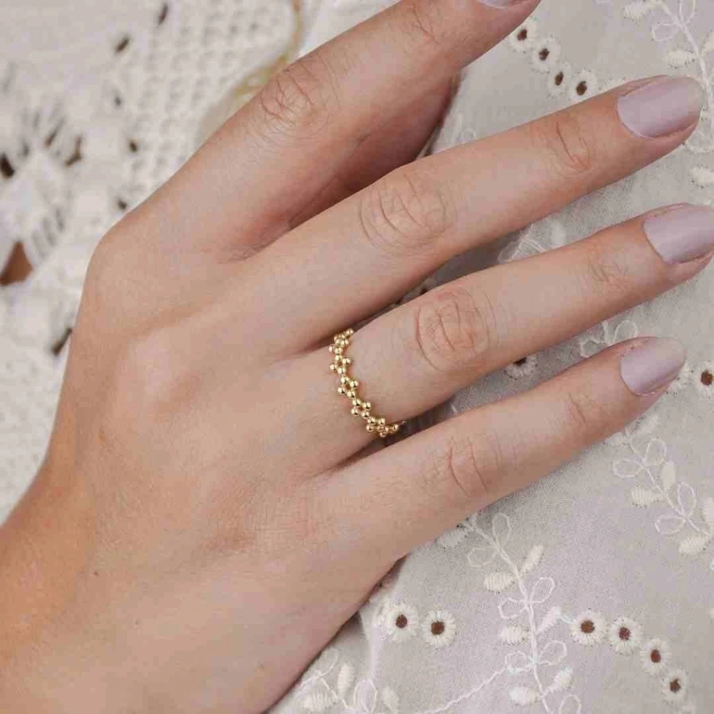 14 Ayar Altın Toplu Eklem Yüzük 1,76 Gram: Evla Kuyumculuk'un 14 Ayar Altın Toplu Eklem Yüzüğü, modern ve şık bir tasarıma sahip olan bir mücevherdir. Yüzük, dayanıklı ve değerli 14 ayar altından üretilmiştir. 14 ayar altın, mücevher yapımında sıklıkla tercih edilen bir malzemedir ve yüksek kalitesiyle bilinir. Bu yüzüğün en belirgin özelliği topuksuz eklem detaylarıdır. Yüzüğün tasarımında kullanılan topuksuz eklem, minimalist bir estetik sunar ve yüzüğe modern bir dokunuş katar. Topuksuz eklem detayları, yüzüğü sade ve şık bir şekilde süsler.14 Ayar Altın Toplu Eklem Yüzük