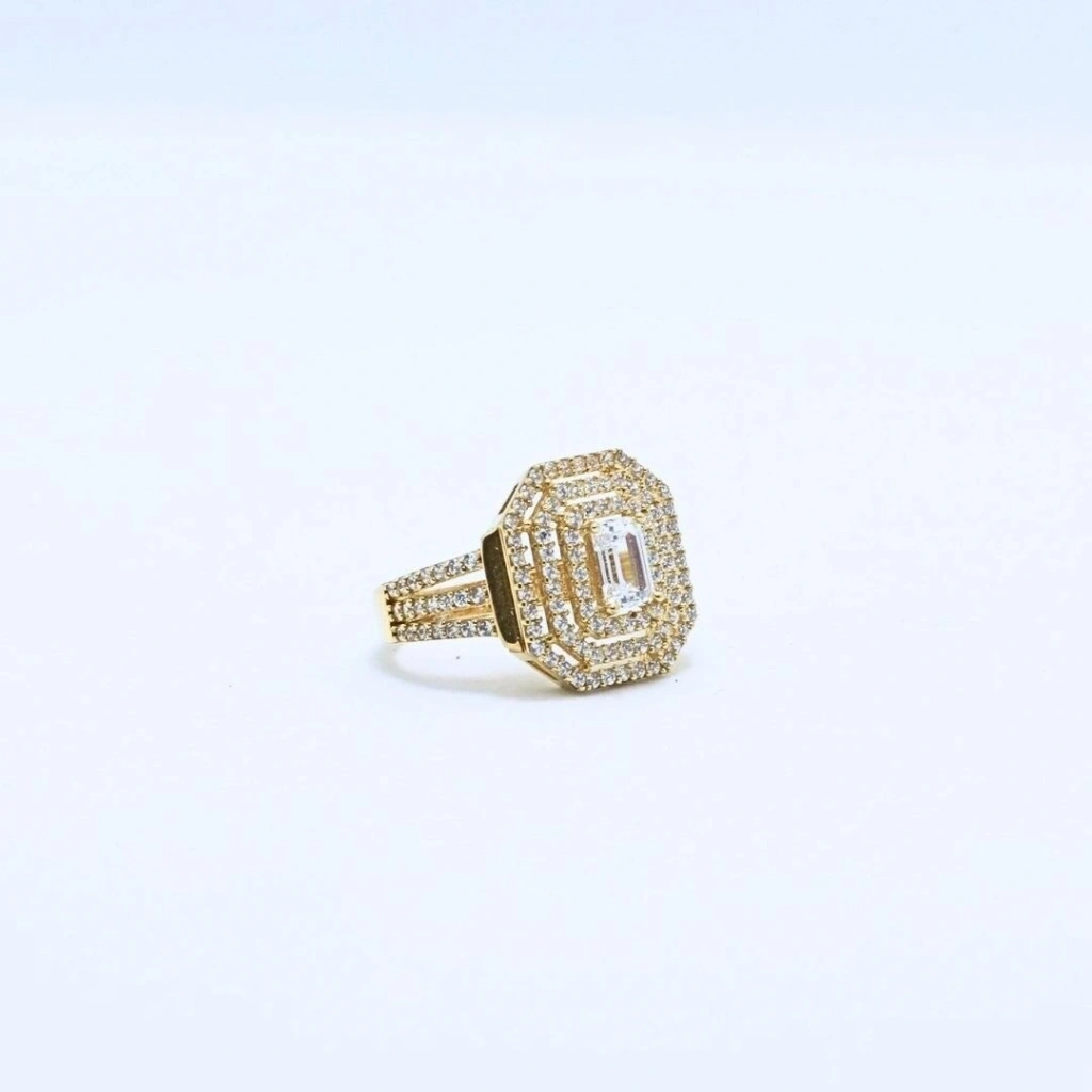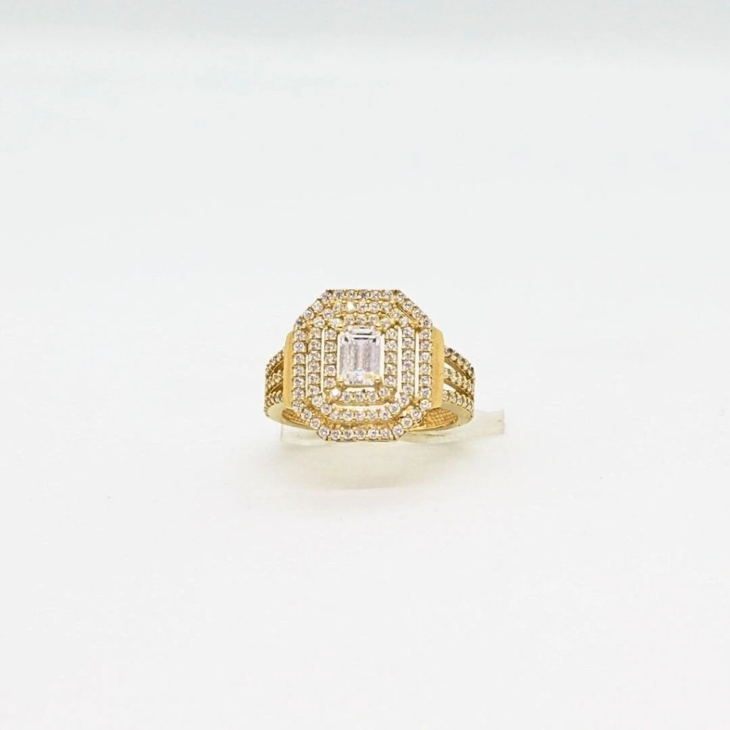 14 Ayar Altın Üç Kollu Baget Yüzük, 3,78 gram ağırlığı ile hem şık hem de sağlam bir tasarıma sahiptir. Üç kollu yapısı ve baget kesim taşlarıyla dikkat çeken bu yüzük, zarif ve modern bir görünüm sunar. Sarı altın rengi, yüzüğün göz alıcı detaylarını vurgularken, zarif bir ışıltı yaratır.