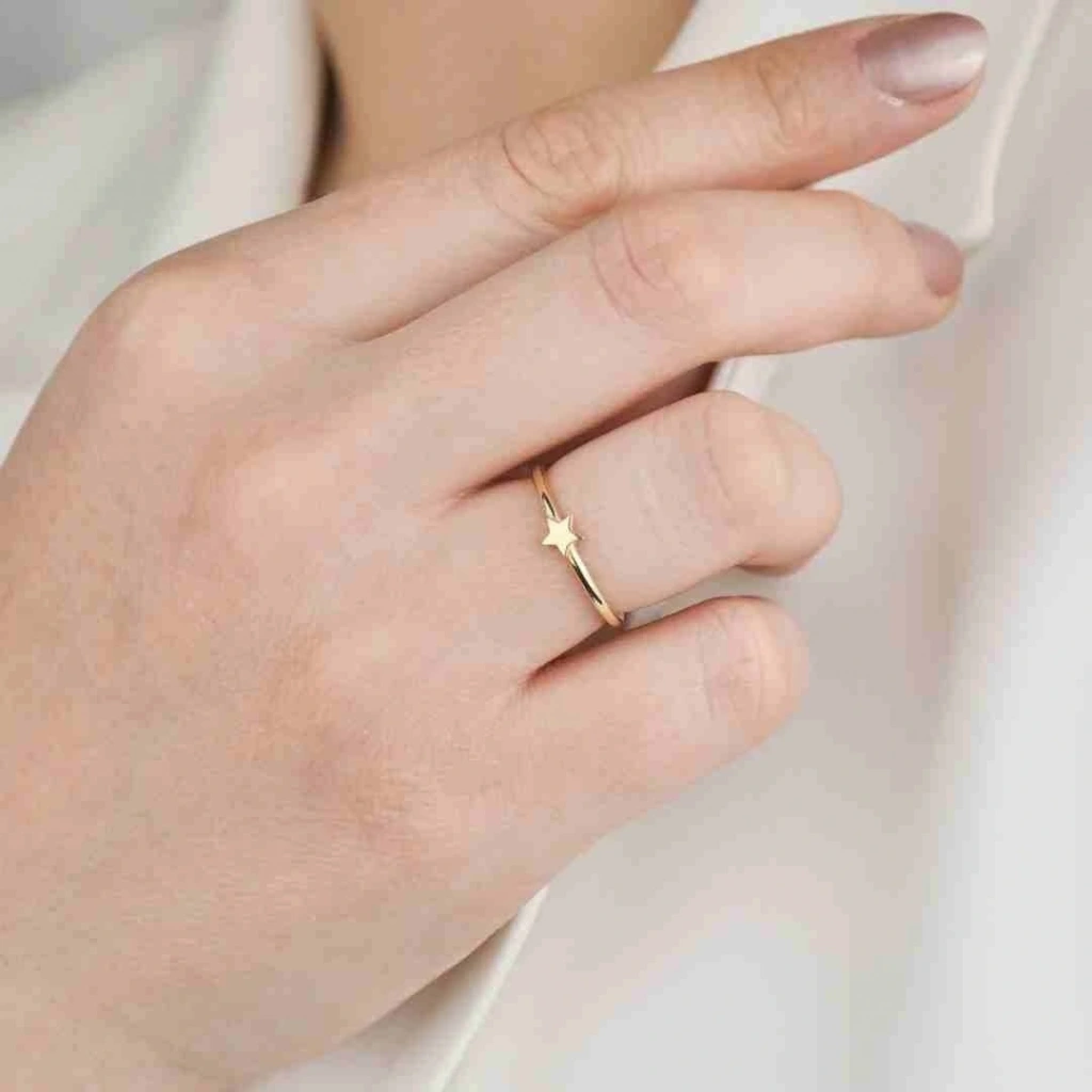 14 Ayar Altın Yıldız Eklem Yüzük 1,10 Gram: Evla Kuyumculuk'un özel koleksiyonunda yer alan 14 Ayar Altın Yıldız Eklem Yüzük, göz alıcı ve büyüleyici bir tasarıma sahip olan özel bir takı parçasıdır. Bu yüzük, 14 ayar altından üretilmiş olup 1,10 gram ağırlığındadır. Yüzüğün tasarımında yıldız şeklinde bir eklem detayı kullanılmıştır. Yıldız, ışığı ve umudu simgelerken aynı zamanda şans getirdiğine inanılan bir semboldür. Bu özel tasarım, yüzüğe büyüleyici bir görünüm kazandırır ve parmağınızda şıklığı vurgular.