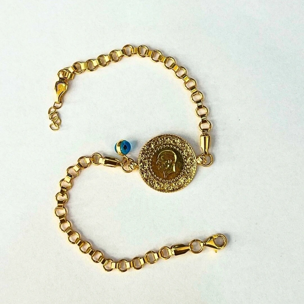14 Ayar Ezme Çeyrekli Bileklik, özgün tasarımı ve yatırım değeri ile dikkat çeken bir takıdır. 14 ayar altının dayanıklılığı ve çeyrek altının klasik değeri, bu bileziği hem estetik hem de ekonomik olarak cazip hale getirir. Günlük kullanım için yeterince zarif, özel günlerde ise yeterince gösterişli olan bu bileklik, stil sahibi kadınların vazgeçilmez aksesuarı olacaktır. Sevdiklerinize özel bir hediye olarak da tercih edebilirsiniz.