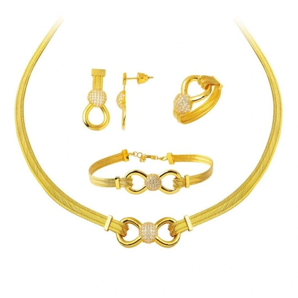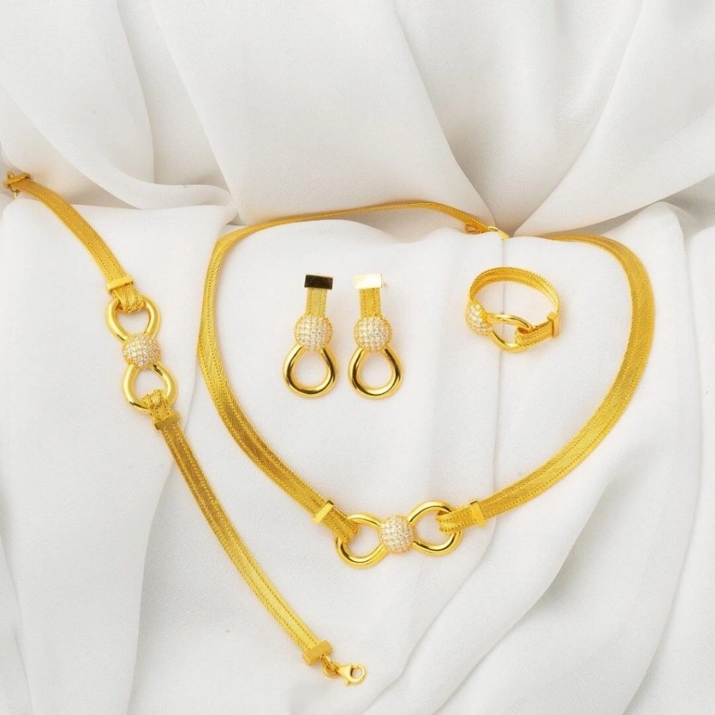 Evla Kuyumculuk, zarafeti ve kaliteyi bir araya getiren 22 Ayar Altın 3 Sıra Taşlı Trabzon Hasır Set Takımı ile özel anlarınıza benzersiz bir dokunuş katıyor. Geleneksel Türk el sanatlarının incelikle işlendiği bu takım, estetik tasarımı ve özel detaylarıyla dikkat çekiyor.