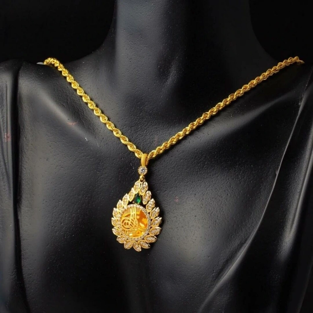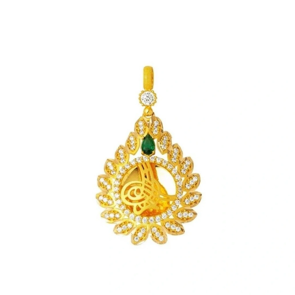 8 Ayar Altın Damla Çerçeveli Tuğralı Altın Kolye 6,17 Gram: