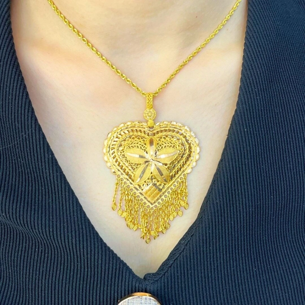 Bu 14 ayar altın Hint zincirli kolye, uzun ve gösterişli yapısıylastilinizi vurgulayan, klasik ve moderni birleştiren çok yönlü bir aksesuardır.
