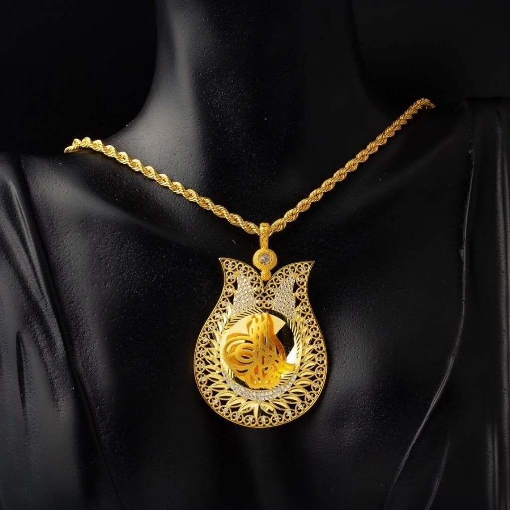 13,53 gram ağırlığındaki bu tuğralı altın kolye, yüksek kaliteli 8 ayar altın ile ustalıkla işlenmiştir.