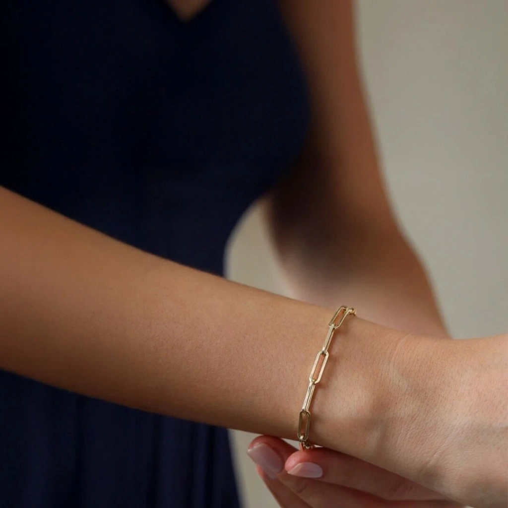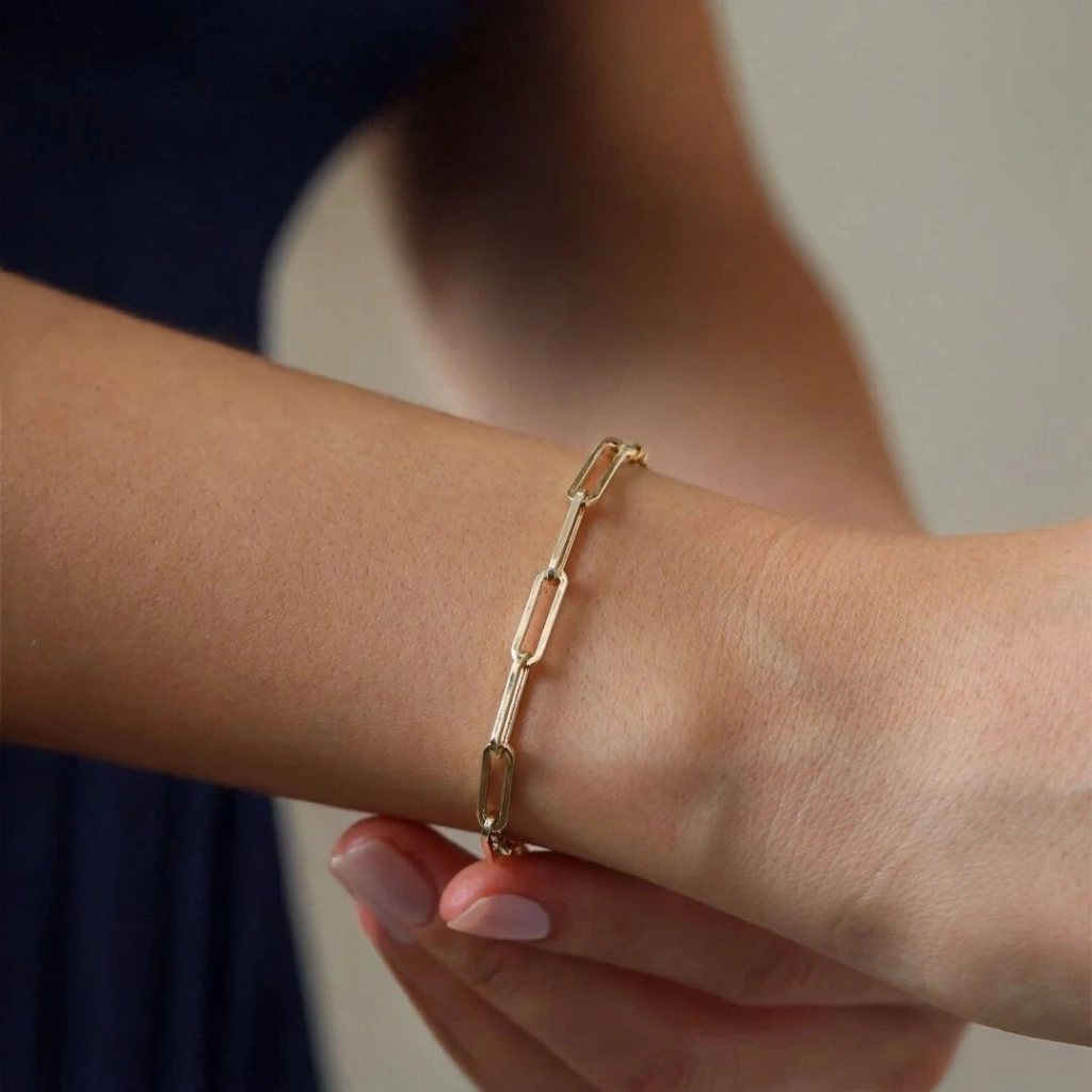 Ataç formundaki halkalarla tasarlanmış bu altın bileklik, hem tek başına hem de diğer bilekliklerle kombinlenmeye uygundur. Hafif yapısıyla günlük kullanım için idealdir, zarafetiyle özel günlerde de öne çıkar.