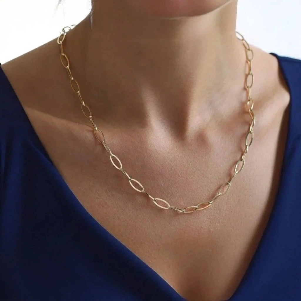 Minimalist ama etkileyici tasarımı sayesinde bu zincir, sade bir zarafet arayanların favorisi olmaya adaydır. Özel günlerde sevdiklerinize unutulmaz bir hediye olarak sunabilirsiniz .  ya da kendi tarzınıza zarif bir dokunuş katabilirsiniz.Altın Geniş Ataç Zincir