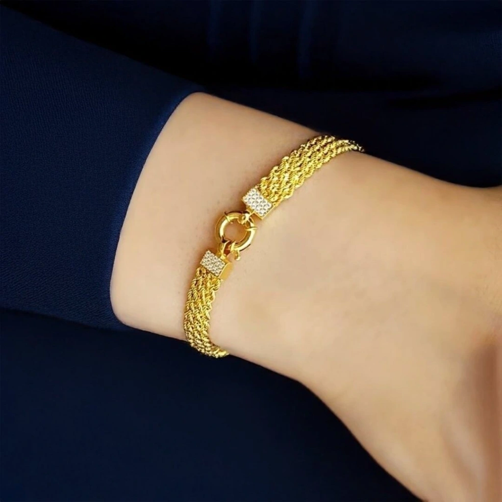 Bu zarif Altın Halat Bileklik, modern tasarımı ve şık detaylarıyla tarzınıza eşsiz bir dokunuş katar. 14 ayar altından üretilen ve 8 mm genişliğe sahip bu Altın Halat Bileklik, bileğinizde göz alıcı bir parlaklık yaratır. 19 cm uzunluğu sayesinde konforlu bir kullanım sağlar ve hem günlük hem de özel günlerde kombinlerinizi mükemmel şekilde tamamlar.