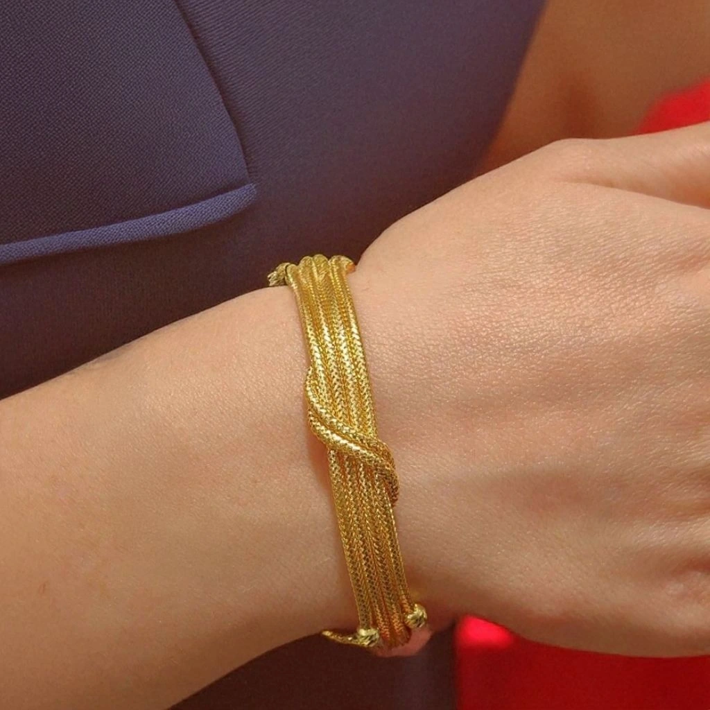 8 ayar altının zarafeti ve modern örgü tasarımıyla özel günlerinize ışıltı katıyor. 11.89 gram ağırlığındaki bu set; kolye, bileklik ve küpeden oluşur. Hafifliği, şıklığı ve göz alıcı parlaklığıyla hem günlük hem de özel kullanıma uygundur.