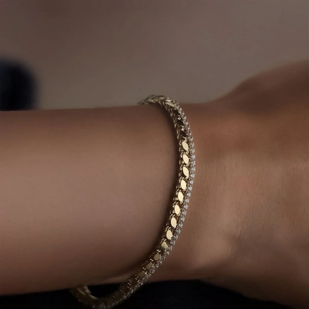 Altın Pullu Suyolu Bileklik,klasik su yolu tasarımına modern bir dokunuş katan zarif pulları ile göz kamaştırır. 14 ayar altından üretilen bu bileklik, 18 cm uzunluğu ve 5,90 gram ağırlığı ile zarafeti ve şıklığı bir arada sunar. Günlük hayatta kullanıma uygun olduğu kadar, özel günlerde de stilinizi tamamlayacak bir aksesuardır.