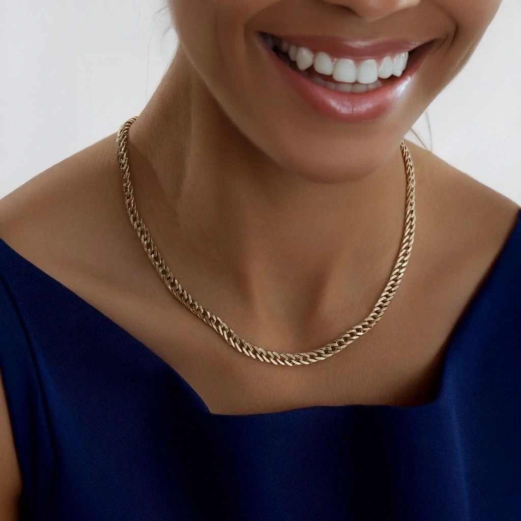 Klasik ve zamansız görünümüyle Altın Gurmet Zincir; 45 cm uzunluğu ve yaklaşık 7 gr ağırlığıyla günlük kullanıma uygundur. Sık ve düz ilmek yapısı takılmayı en aza indirir, yüksek cilası güçlü bir parlaklık sunar. Aynı gün kargo, kredi kartına vade farksız 3 taksit ve havale/EFT’de %10 indirim avantajlarıyla güvenle sipariş verebilirsiniz.