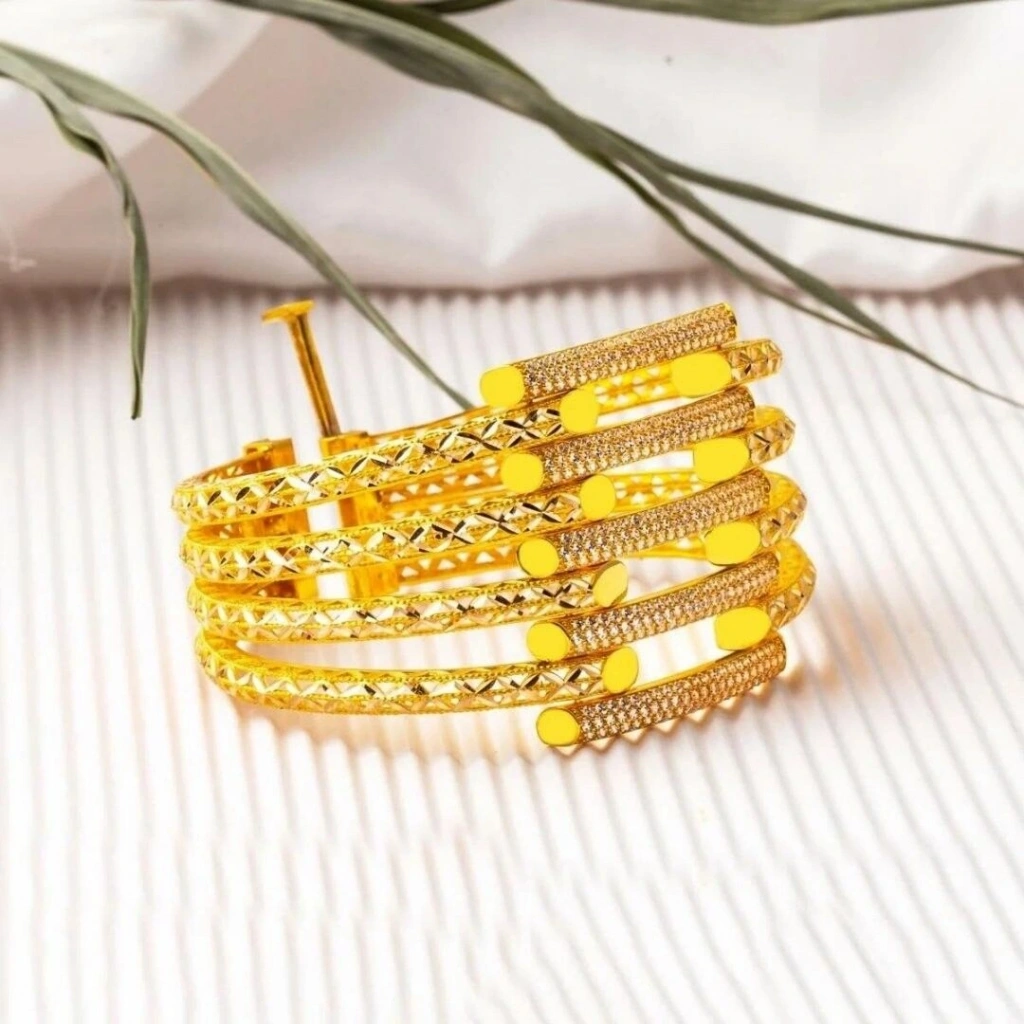 Evla Kuyumculuk’un Beşli Kaburga 8 Ayar Altın Kelepçe Bilekliği, gösterişli ve klasik bir tasarıma sahiptir. 34,00 gram ağırlığındaki bu bileklik, özel günler için idealdir. Bileklik, parlak bir görünüme sahiptir.