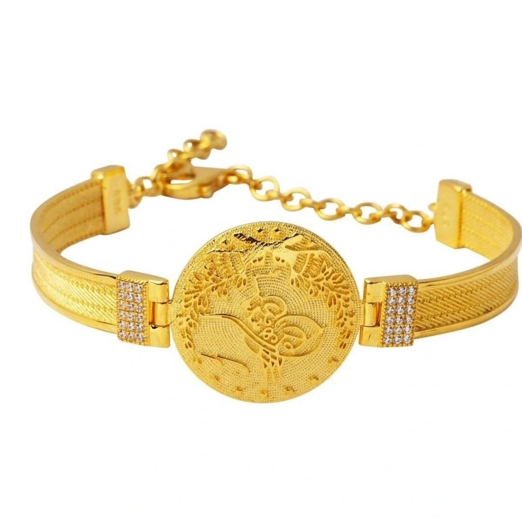 Tuğralı 14 Ayar Altın Trabzon Hasır Bileklik 16,44 Gram: Evla Kuyumculuk'un özel koleksiyonunda yer alan Tuğralı 14 Ayar Altın Trabzon Hasır Bileklik,geleneksel ve zarif bir parçadır. Bu bileklik, yüksek kaliteli 14 ayar altın kullanılarak özenle tasarlanmıştır . Ustaların elinde örülerek oluşturulmuştur. Bilekliğin Trabzon hasır deseni, Türk kültürünün önemli bir sembolü olan bu özel motifin modern bir yorumunu sunar. Altın zincirlerin ustalıkla örülmesiyle oluşturulan bu hasır deseni, bileğinizi zarif bir şekilde sarmalar ve göz alıcı bir etki yaratır. Bileklikteki özel tuğra detayı, Osmanlı İmparatorluğu'nun tarihsel bir simgesini yansıtarak bileğinize tarihi bir zarafet katar.
